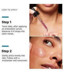 Once or twice daily, apply 4-6 drops to the palm of the hand and dab onto forehead, cheeks, chin, and neck. Blend the product into skin. If using in the morning, apply after a SkinCeuticals vitamin C antioxidant serum and before a SkinCeuticals sunscreen. If using with a retinol at night, apply after retinol.